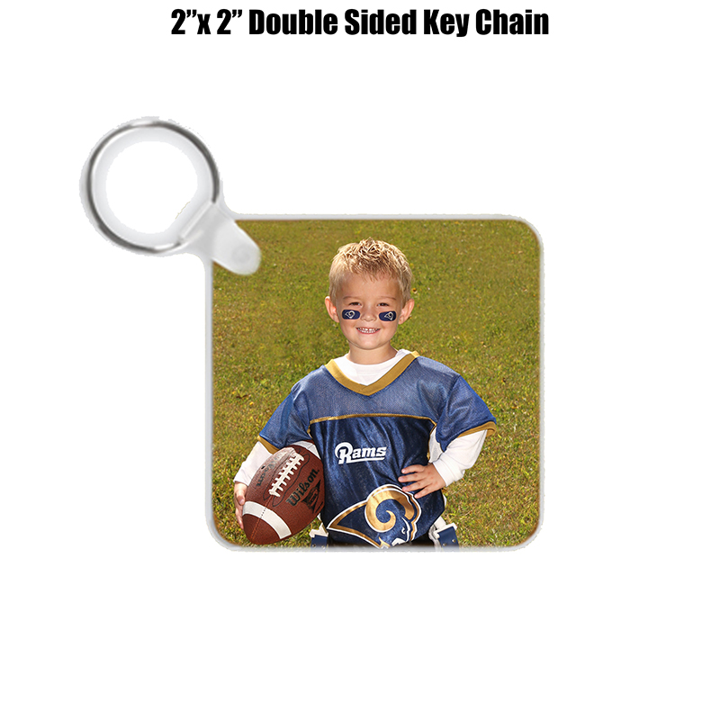 Your childs individual image will be printed on both front and back of this high quality 2″x 2″ acrylic keychain.